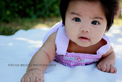 This sweet little one is the daughter of our very good friends, and her big brother is my son's best friend. I took her newborn pictures too and since she's hit the 3 month milestone, mom and dad needed an update. When she was born, she had an insane amount of hair. Now, she has 3 times that. Oh, and those cheeks, they are so adorable!